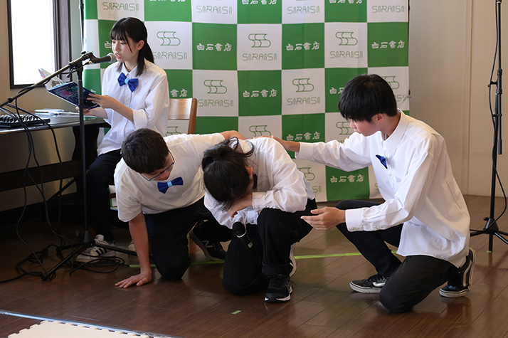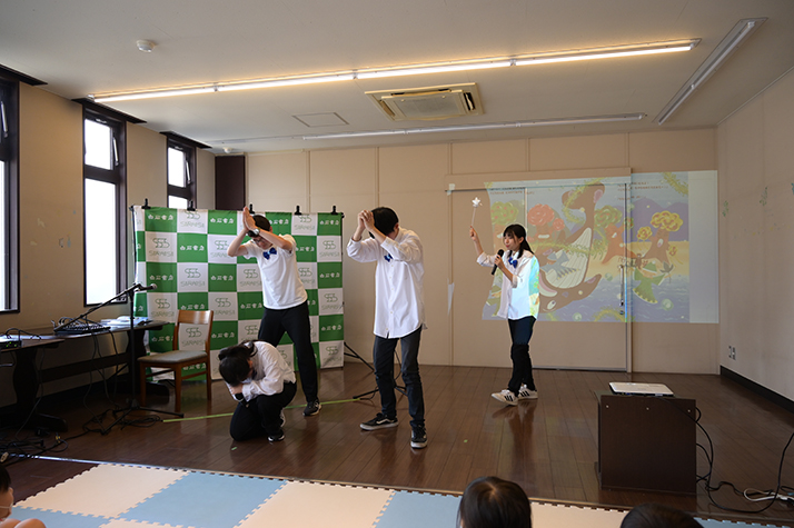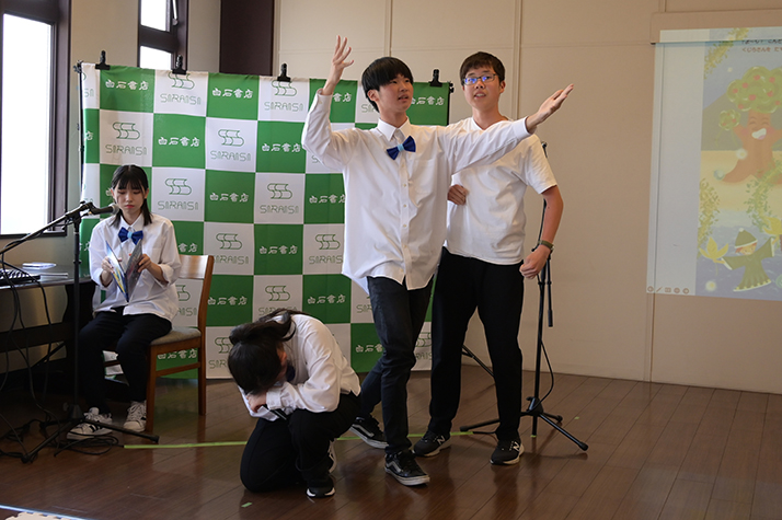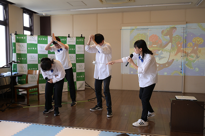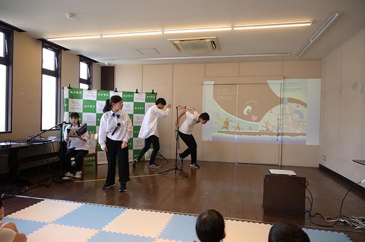 2023年6月11日(日)北九州市八幡西区力丸町「白石書店本店」にて、児童劇団リトルキャッツによる絵本「くじらのプウパとハートこうじょう」読み聞かせパフォーマンスを行いました。