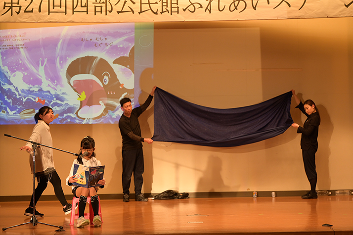 2024年2月17日(土)福岡県京都郡苅田町「西部公民館大ホール」にて、児童劇団リトルキャッツによる絵本「くじらのプウパとハートこうじょう」読み聞かせパフォーマンスを行いました。